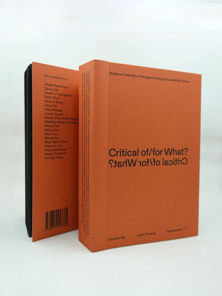 What does it mean to be critical in Singapore design education and practice today? Critical of/for What? Notes on Criticality in Singapore Design Education and Practice asks how Singapore designers and educators engage with criticality in teaching and practice. Through interviews and discussions with designers, educators and students, it explores the tensions between educational aims and professional realities. There are also essays retracing local histories of criticality-engaged design practices and an analysis of how designers negotiate criticality within the Singapore design landscape.